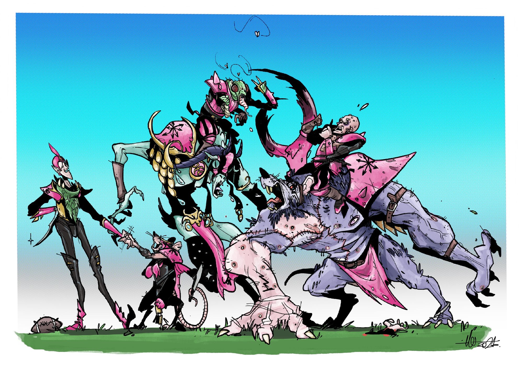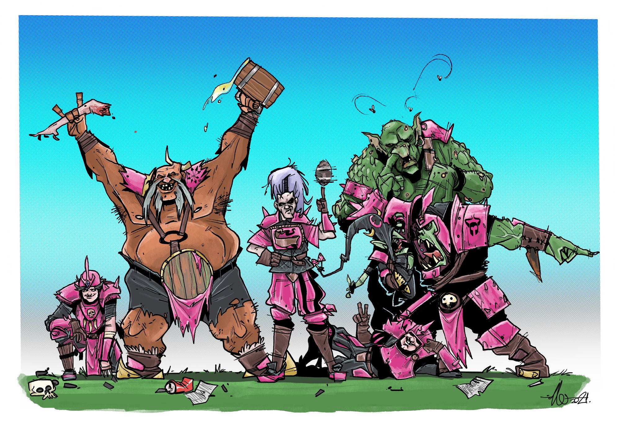 What most of you won't expect is that I commissioned my (now) friend Roberto Cuevas to do a couple of illustrations depicting the team, inspired in the oldschool style from second edition, but letting Roberto do his thing. And he absolutely killed it. I hope you all enjoy them like I did.