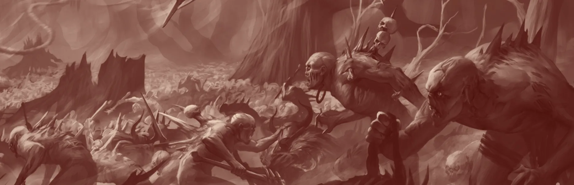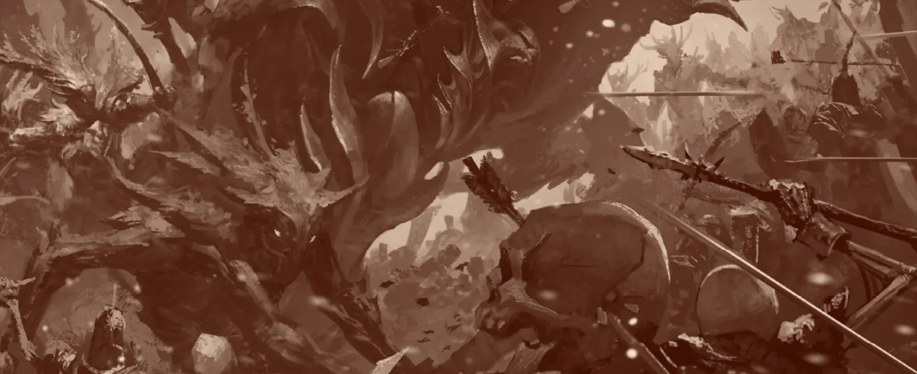 During the War agains Chaos, hunger and desperation forced human settlements to cannibalism. With their minds ravaged by their awful acts, the doom of a vampire's delusion fell over them, turning whole Ghyran populations into crazed monsters. Years later the Everqueen used her powerful magic to bless the lands with fertility, granting multiple boons to the inhabitants of those lands so no one had to endure hunger and deprivation again. With plenty of food for the surface people, the Flesh Eaters had no way to reinforce their numbers. Graveyards and burial sites almost empty and overrun with vegetation, the war against the living was lost and the casualties piled up so the tunnel dwellers and the corpse eaters' numbers dwindled to the brink of extinction.