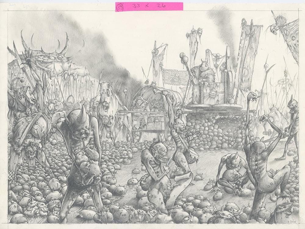 At the time of this post going online I've pre-ordered Drew Williams' Plague Bearers and Chaos Warriors (sorry, Sons of Crom). Drew sculpted the dancing daemons drawn by Adrian Smith for the Realm of Chaos supplement, and you can't get something better than that for a project like this. Let's hope Spanish customs don't eviscerate me for this.