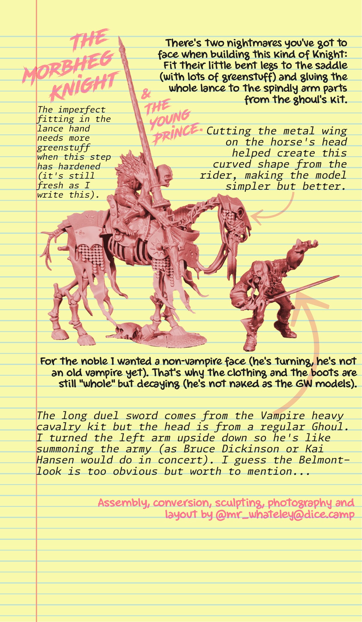 It's been 2 years since I started looking for a proper Morbheg Knights conversion. A more fitting mount, really, because I was tired of the Vampire McBatty GW's theme. I tried boars, Mournfangs, giant bats... Nothing worked for me.