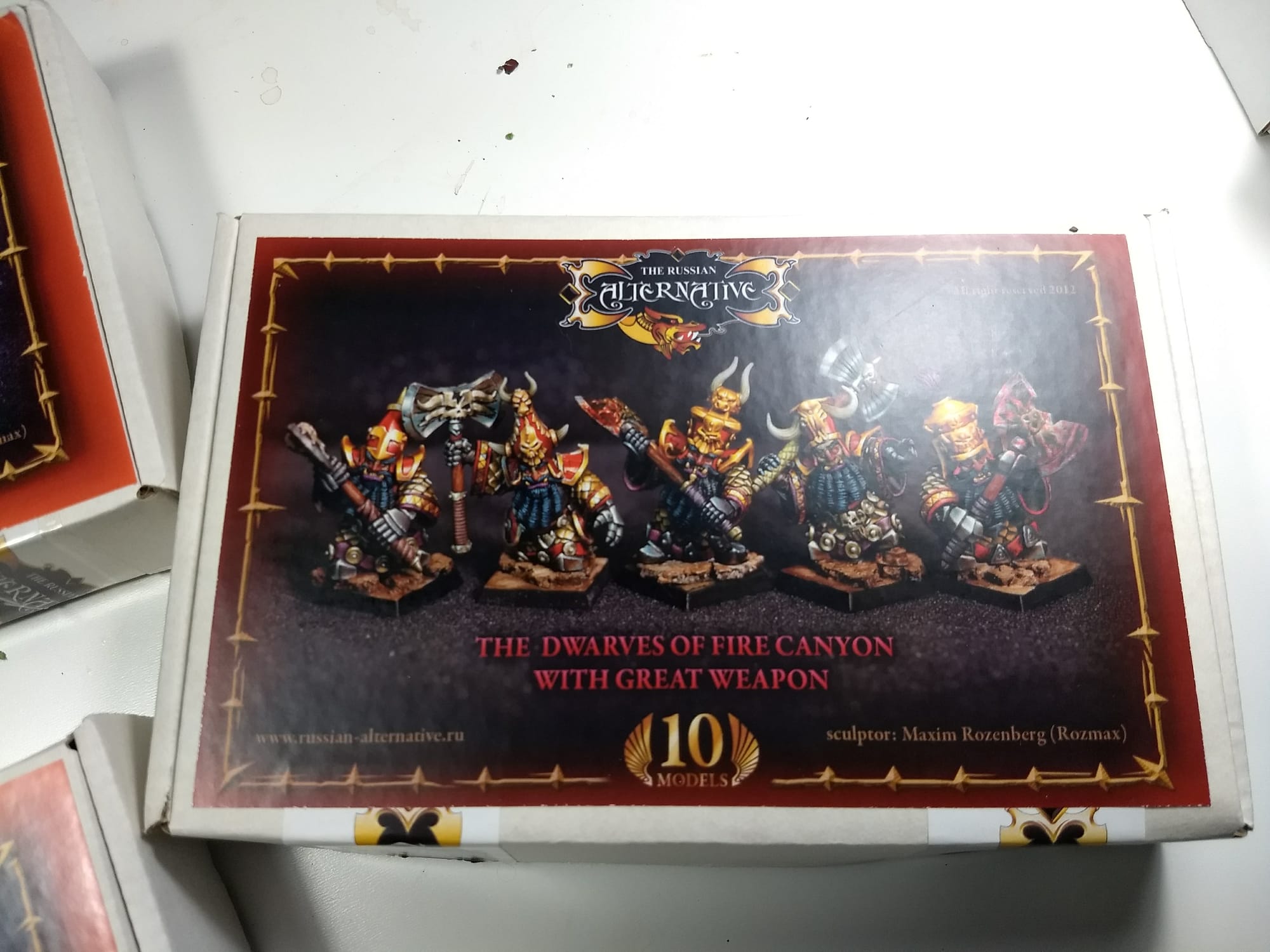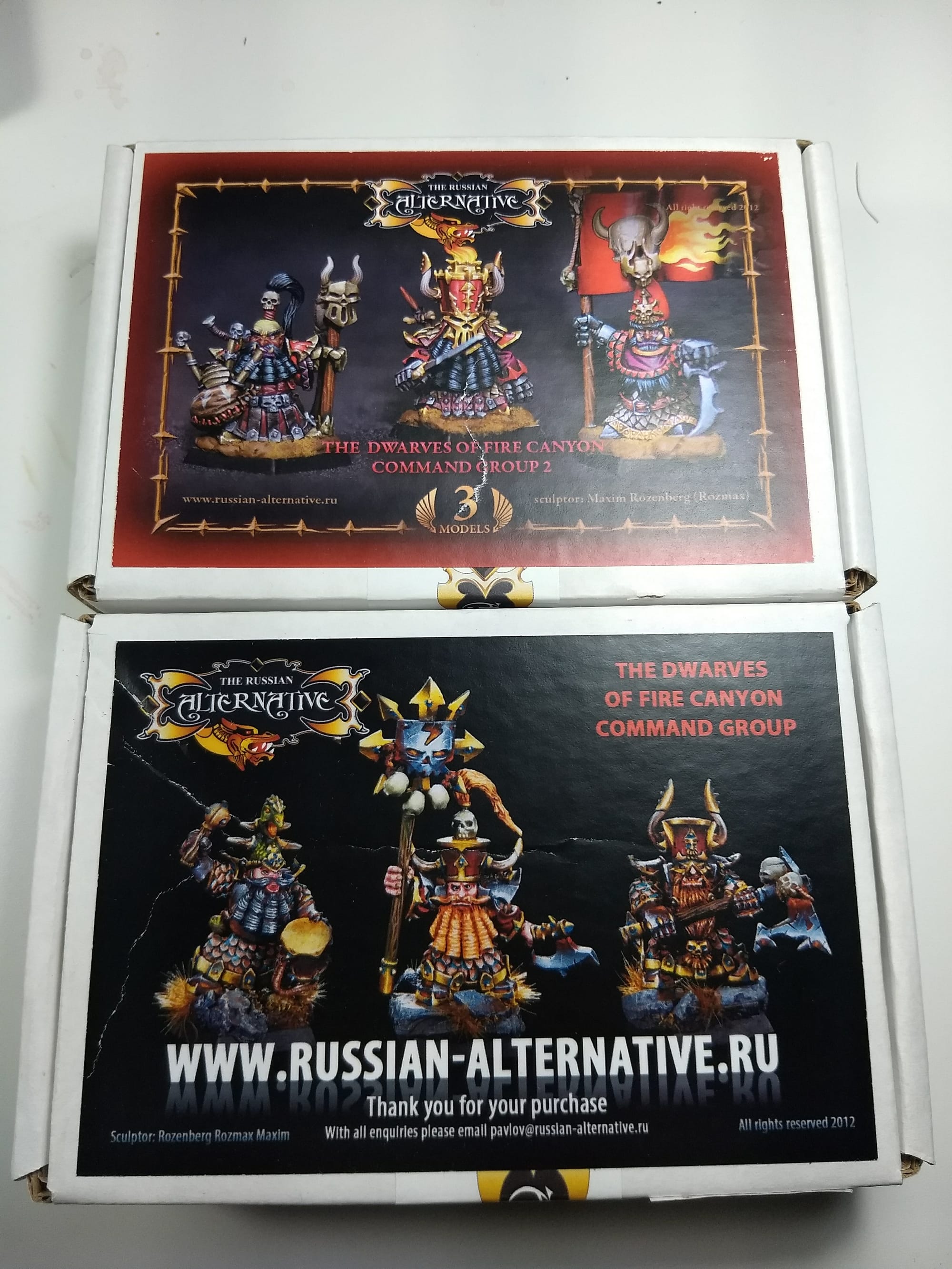 Believe it or not, back in February 2016 I had a stroke of luck and found some really nice Chaos Dwarves (Dwarfs? Chorfs?), called Dwarfs of the Fire Canyon painted by a talented russian painter. Following his info, I discovered this company: The Russian Alternative. At that time, they were selling off their resin kits at 50% of their tag price (they were switching to plastic).