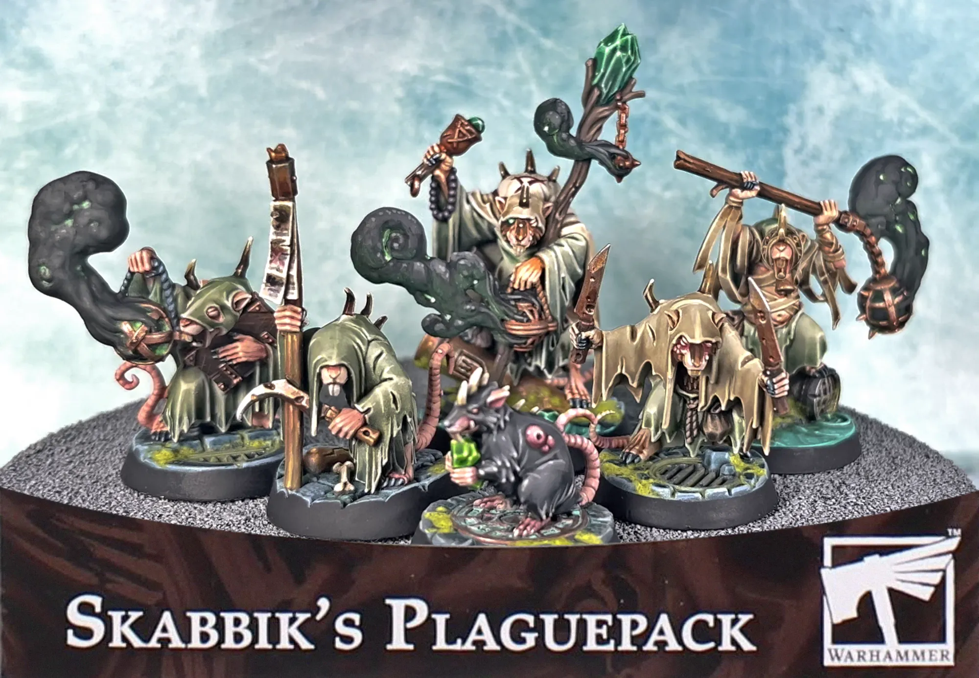 The diseased skaven of Skabbik’s Plaguepack plan to usher in the birth of one of the Great Plagues – an apocalyptic disease prophecised amongst the fanatical verminkin of the Clans Pestilens.