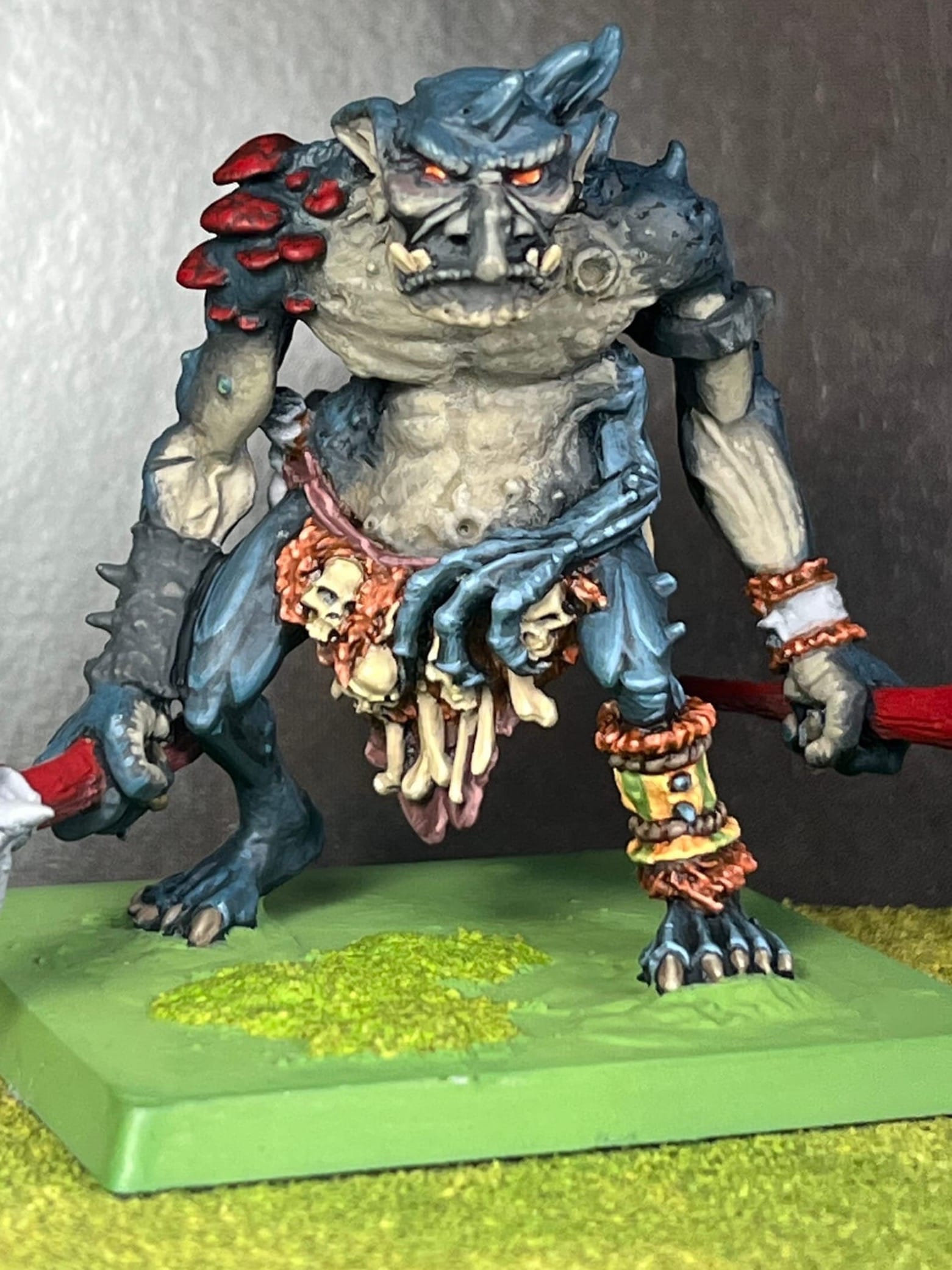 This one needs some more work, but I forgot my skin tone recipe, and that stalled the project. I'm decided to finish him and the Rat Ogre soon.