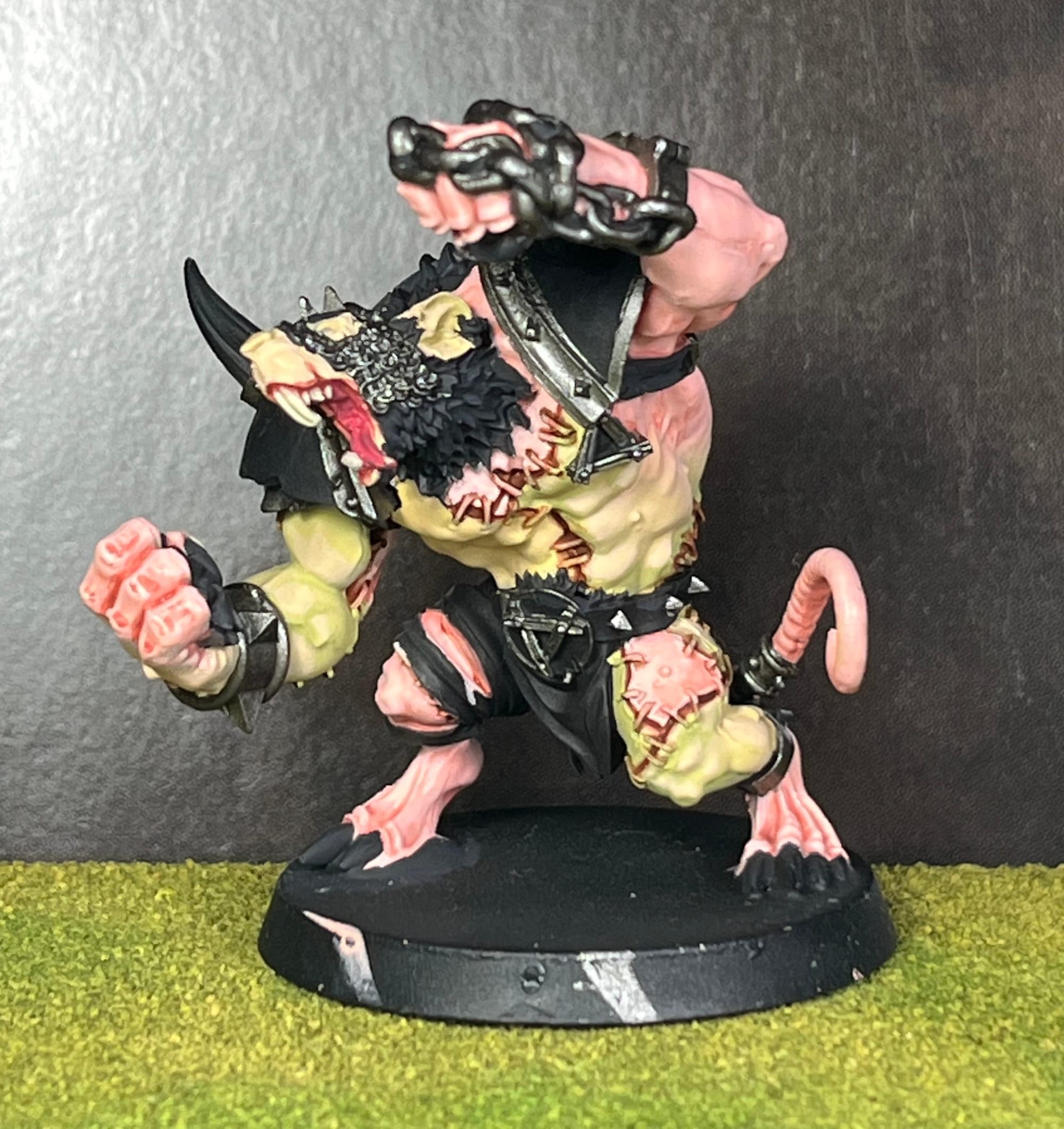 I started this rat ogre for my underworlds team months ago. Loved the skin mid tones and I'm eager to finish it. It's a recast, BTW. Forgeworld resin is nice but their parent company sucks.